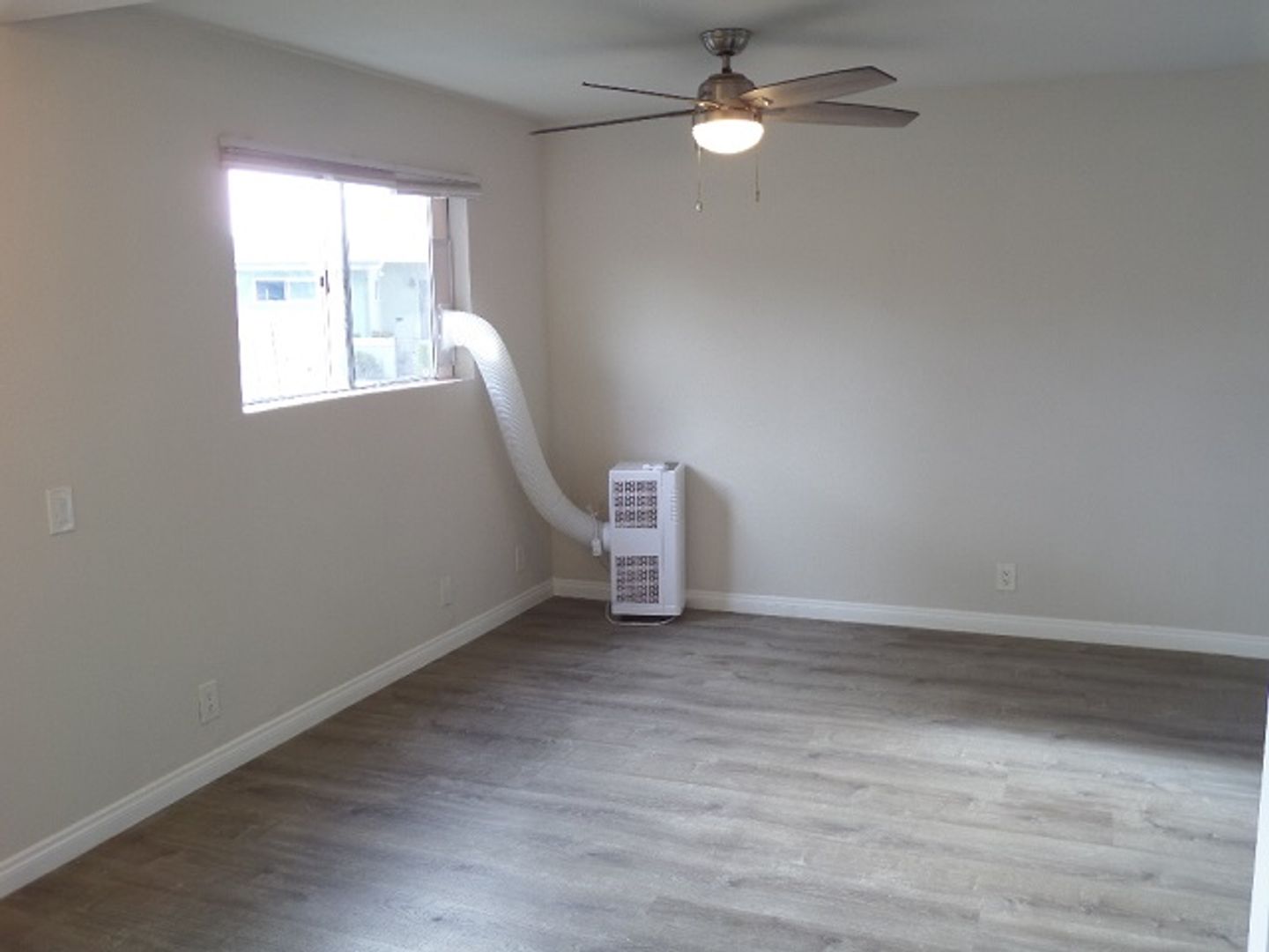 Introducing this 1 bedroom, 1 bathroom single-story apartment on the first floor in San Diego. The unit includes vinyl plank flooring, ceiling fans, baseboard heating and a portable AC unit, plus a refrigerator, microwave and electric stove for convenient meal preparation. On-site coin laundry and gardener service are provided. Rent includes 1 assigned parking space. Located near public transportation and close to shopping and dining, this apartment offers practical, easy-access living in a central San Diego location.