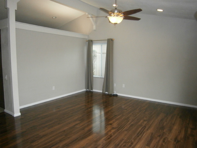 This home has a beautifully updated interior with vaulted ceilings, the spcaious kitchen with small dining area also comes with a gas stove, refrigerator, dishwasher, garbage disposal, and microwave. There is plenty of counter space as well as cabinet space.