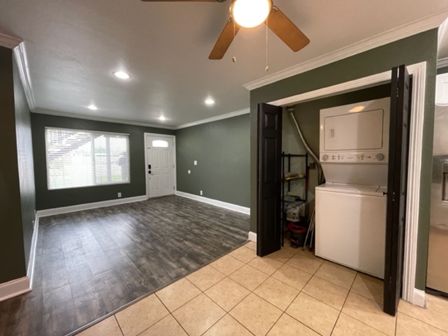 There is a family room, condo has central air conditioning, forced heating and ceiling fans. Decorative paint throughout. Stackable washer and dryer located in the pantry/storage closet located in the kitchen. Enjoy the patio area. Parking in the garage or on street available. Complex is gated, has picnic tables, gardener service for common areas.