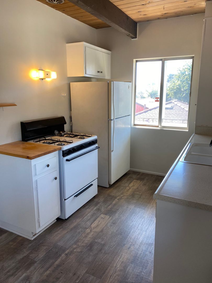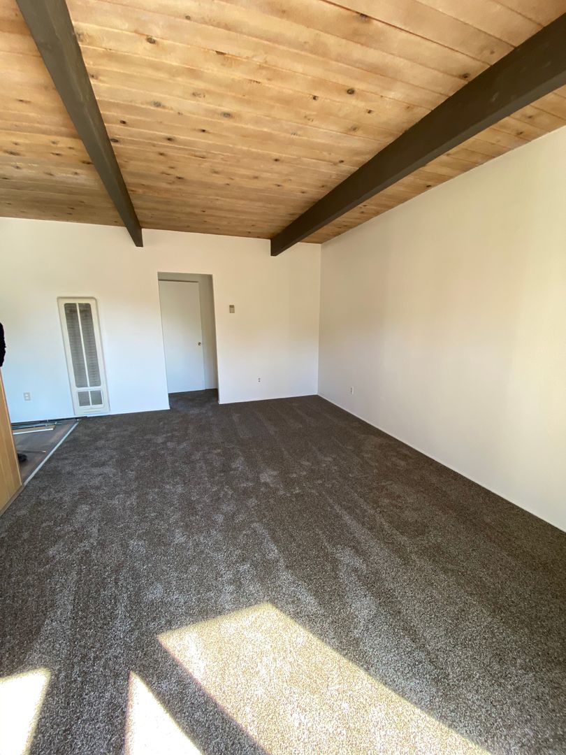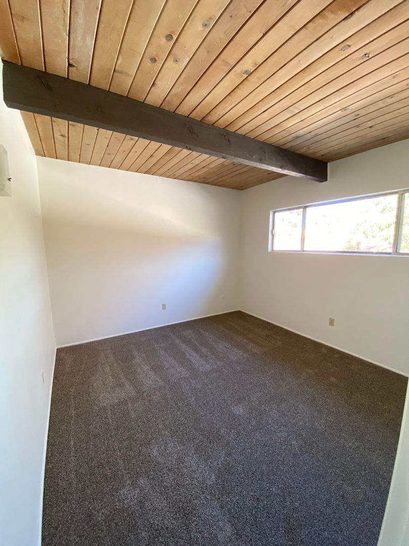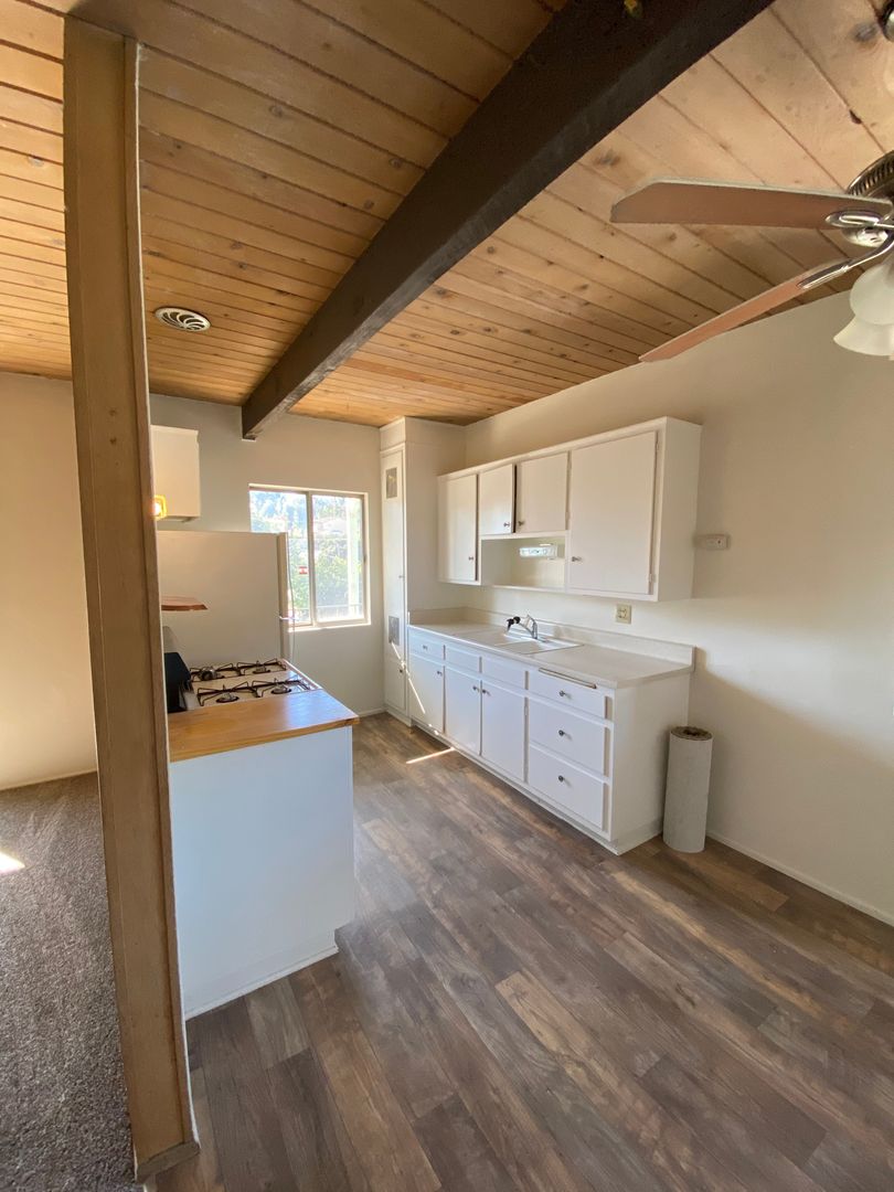 This unit has carpet and vinyl flooring, the kitchen comes with a gas stove, refrigerator and small dining area. Vaulted wood ceilings. There is 1-reserved parking space and gardening service is provided to the common areas. This complex has no laundry on site.