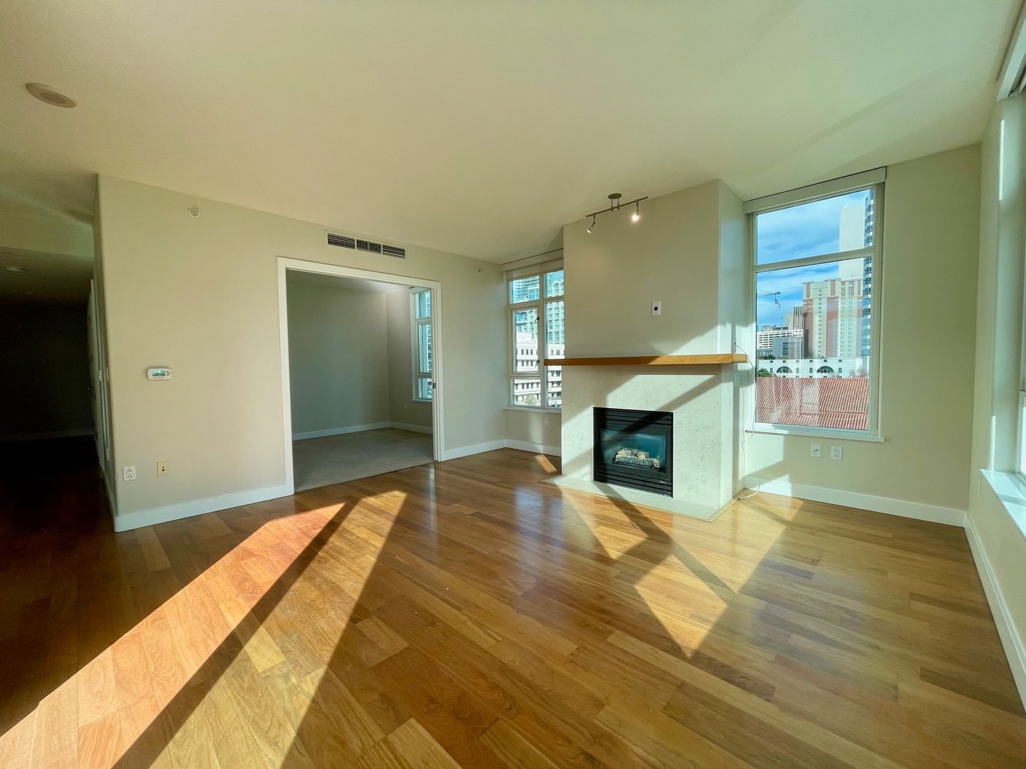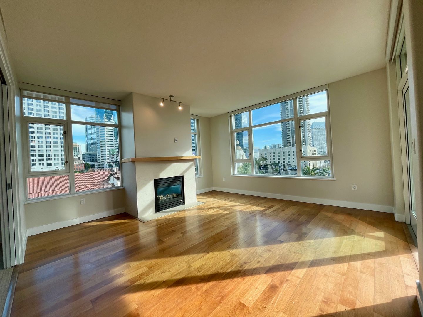 Welcome to this stunning single-story condo located on the 6th floor of the prestigious Grande South condominiums in the highly sought-after area near Little Italy and the Santa Fe Depot. This 2-bedroom, 2-bathroom home offers a modern and luxurious living experience. The kitchen features a gas stove, refrigerator, and double oven, all made with sleek stainless steel appliances. Cozy up by the gas fireplace in the spacious living area, perfect for relaxing or entertaining guests. Convenience is at your fingertips with a stackable washer and dryer in the unit. Step outside onto the balcony and enjoy the breathtaking views of the city. The complex offers a range of amenities including a gated entry for added security, a refreshing pool and spa for those warm California days, a fully-equipped gym for your fitness needs, and a BBQ area for outdoor gatherings. With its prime location in Little Italy, you'll have easy access to a variety of dining, shopping, and entertainment options. Don't miss out on the opportunity to call this luxurious condo your new home. Schedule a showing today and experience the best of San Diego living at Grande South condominiums.