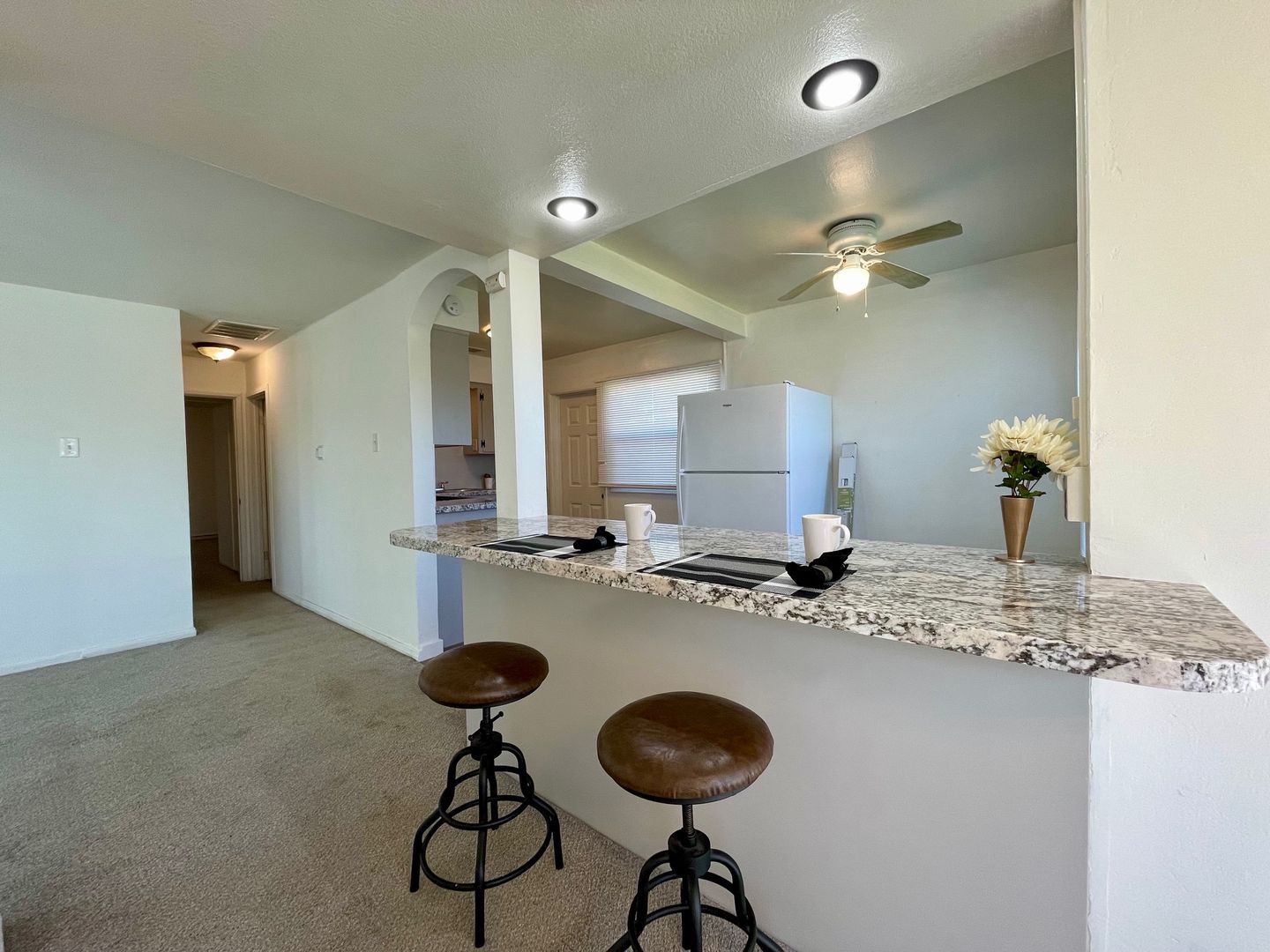 Welcome to this charming 3 Bedroom-1 Bathroom Single Story Home in the heart of El Cajon, CA. This home boasts a spacious layout with three bedrooms and a fully updated bathroom. The interior features a blend of carpet and tile flooring, adding a touch of elegance and comfort. The updated kitchen, equipped with a refrigerator and gas stove, is perfect for those who love to cook. The home also offers the convenience of washer/dryer hook-ups. Stay cool during the summer with the wall A/C and enjoy the warmth during winter with the forced heating system. Step outside to a fenced front yard, perfect for outdoor activities, and a patio that's ideal for relaxation or entertaining. This home also includes off-street parking, ensuring your vehicle's safety. As an added bonus, water, trash, and sewer services are included in the rent, and a gardener is provided to maintain the outdoor spaces. Experience the perfect blend of comfort and convenience in this beautiful El Cajon home.